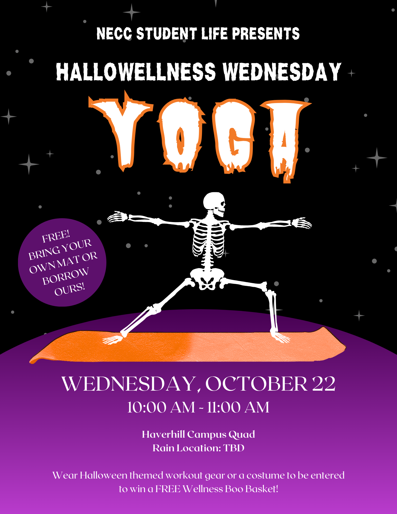 Get into the spooky spirit while taking care of your mind and body! Join us for a beginner-friendly yoga session with a Hallowellness twist. Stretch, breathe, and relax while embracing the Halloween vibes. Wear your favorite Halloween themed workout gear or costume for a chance to win a Wellness Boo Basket! Mats will be provided—just bring your festive energy.
