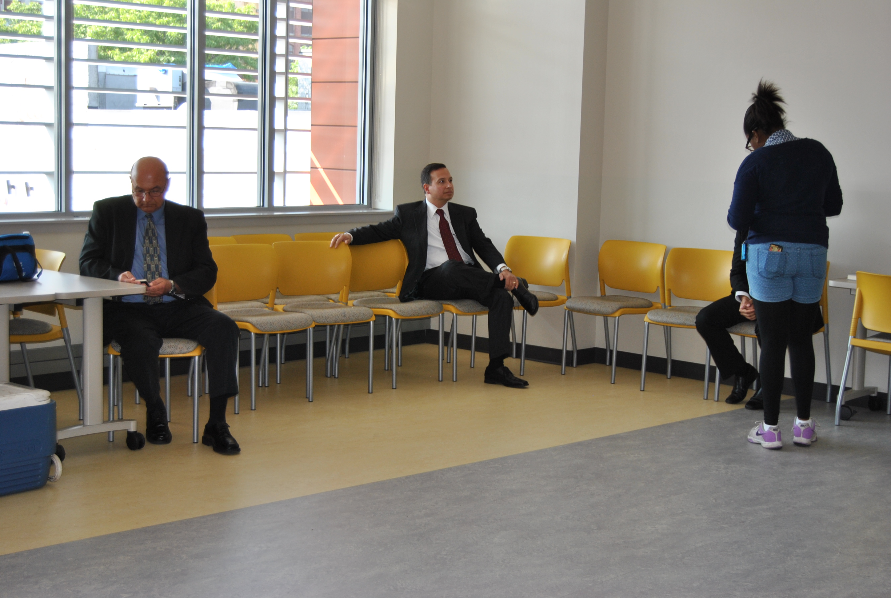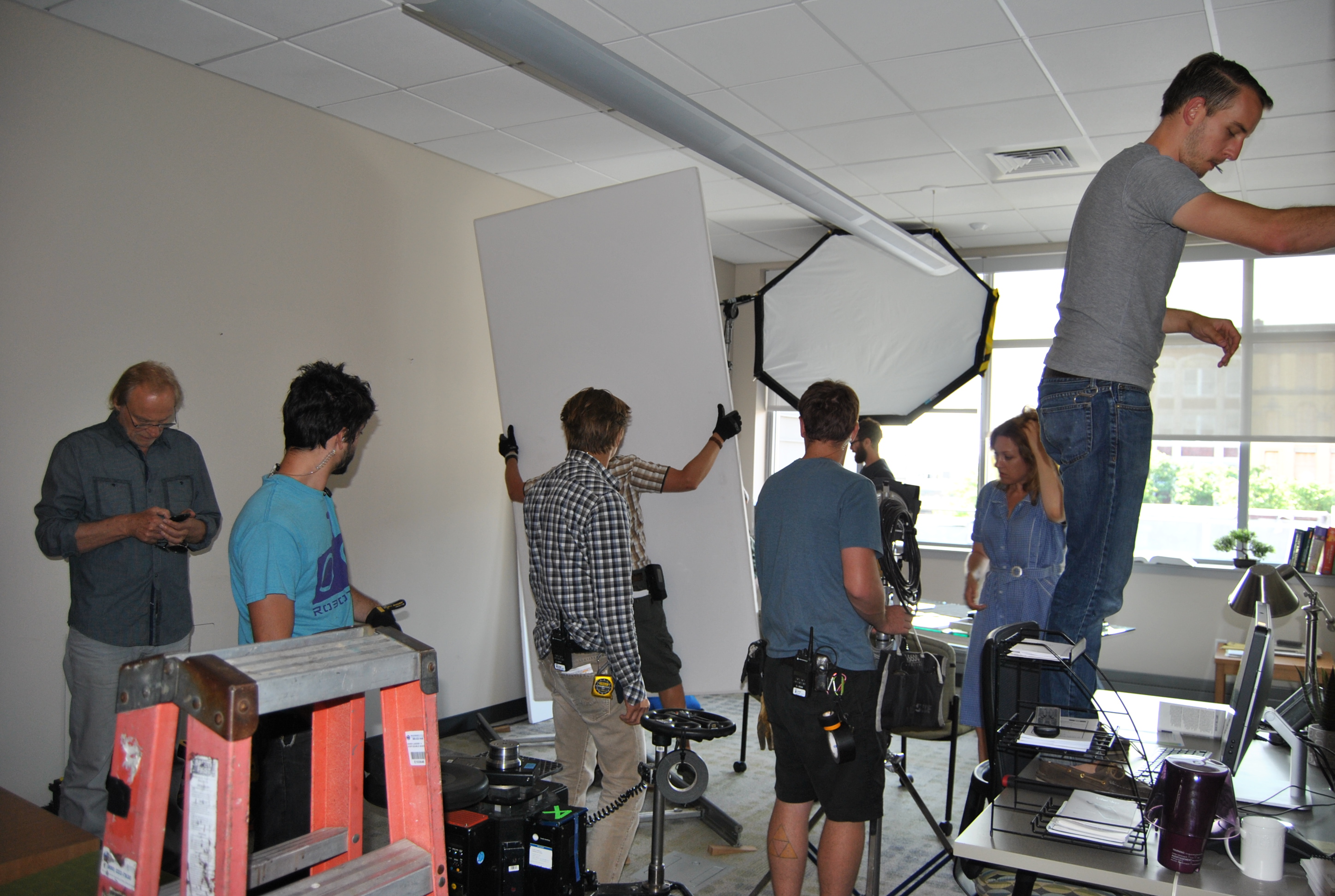 With the help of the production company’s art department, a meeting room, a lab, and the rooftop were all pressed into service and transformed for the necessary scenes. Furniture and props were borrowed from the Amesbury Street and Franklin Street buildings. In addition, rooms were secured for wardrobe, makeup, and movie extras.