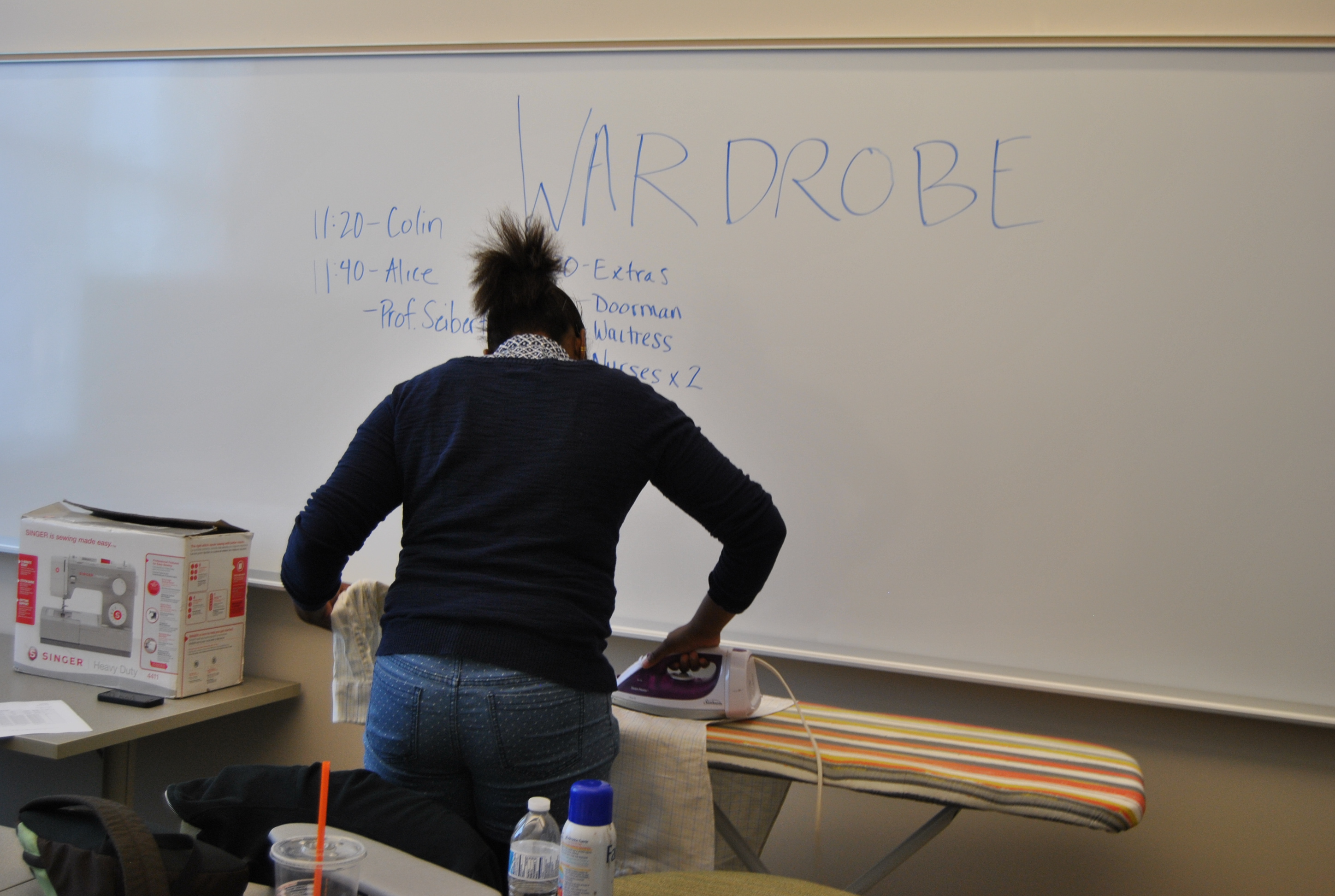 Makeup artist Rose Westerman prepares an extra for her role in the German film “Forget Me Not”. A few scenes were filmed at NECC.
