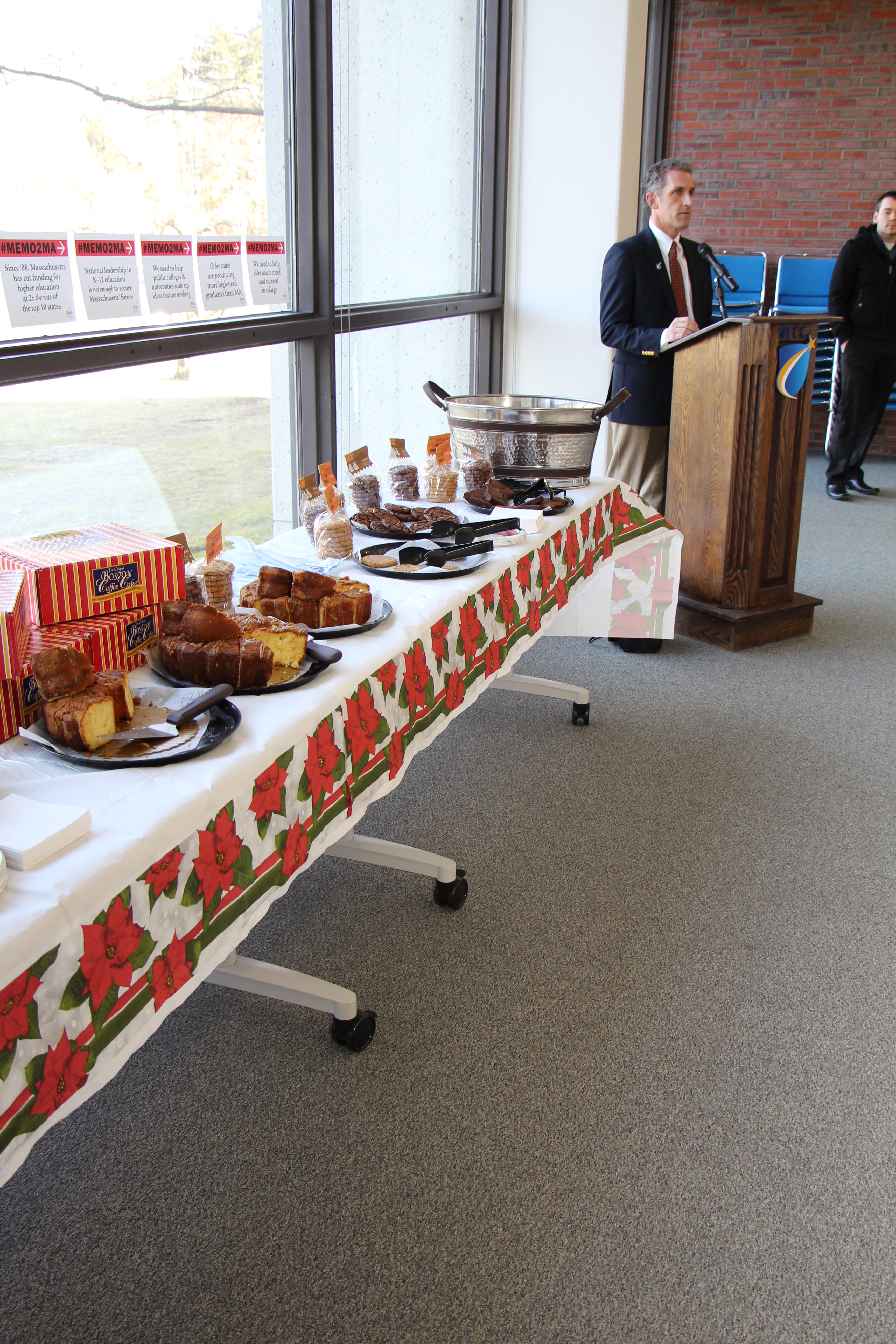 Cookies, coffee cake, and hot chocolate were the morning fare for students, staff and faculty who participated in the Massachusetts Department of Higher Education’s Vision Project Twitter photo contest titled Degrees of Urgency: Why Massachusetts Needs More College Graduates Now.
