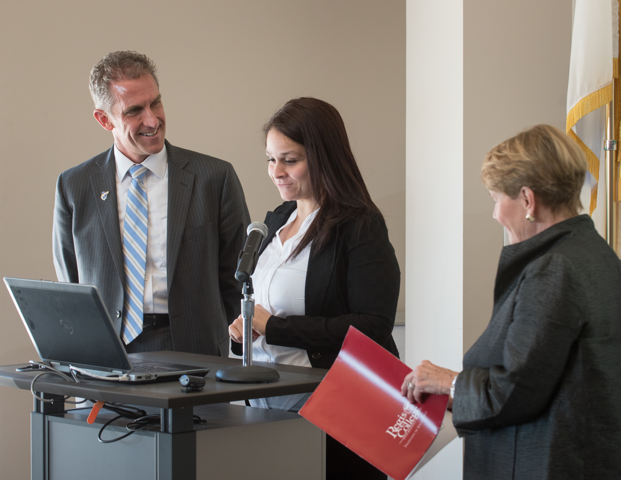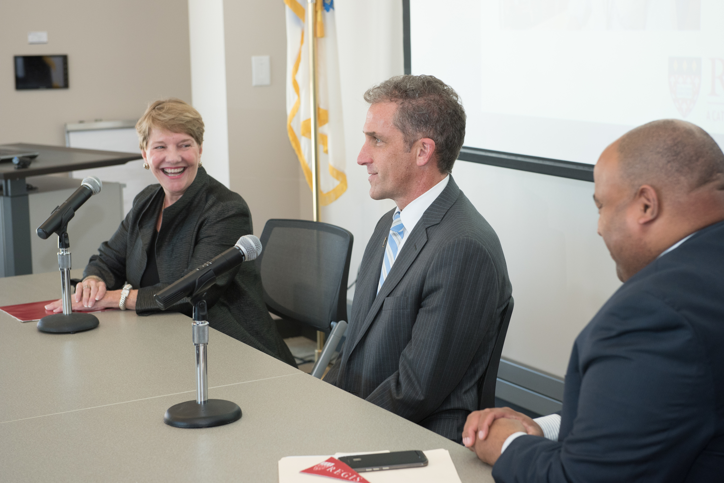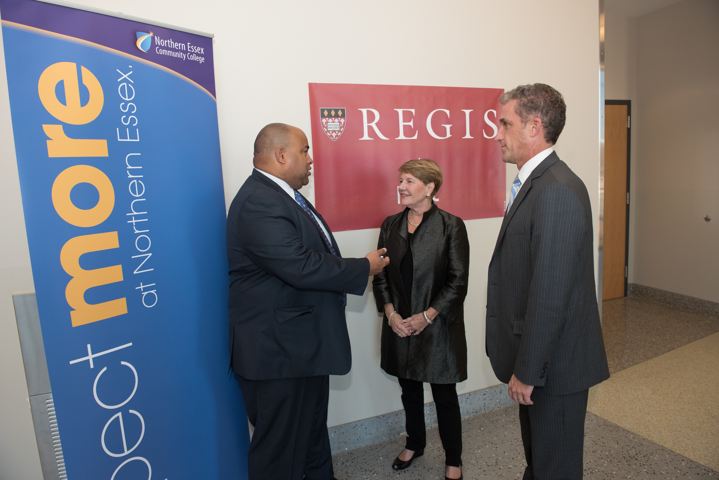 - Lawrence Mayor Dan Rivera, Regis President Toni Hays, and NECC President Lane Glenn