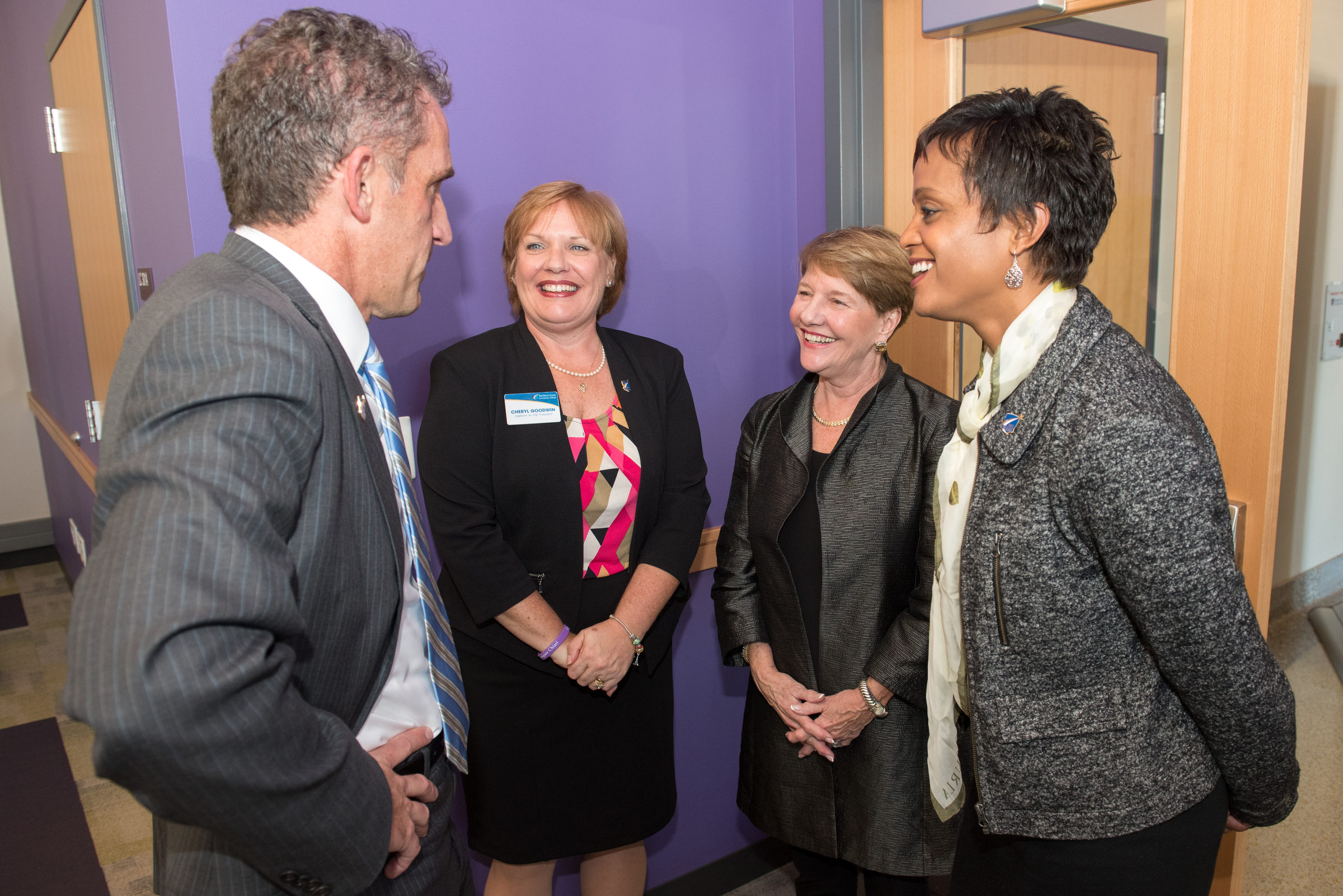 - NECC President Lane Glenn, Cheryl Goodwin, NECC, Regis President Toni Hays, and Noemi Custodia-Lora, NECC