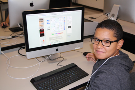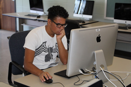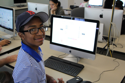 - Joshua Robles of Lawrence works on a project during Technology Camp.