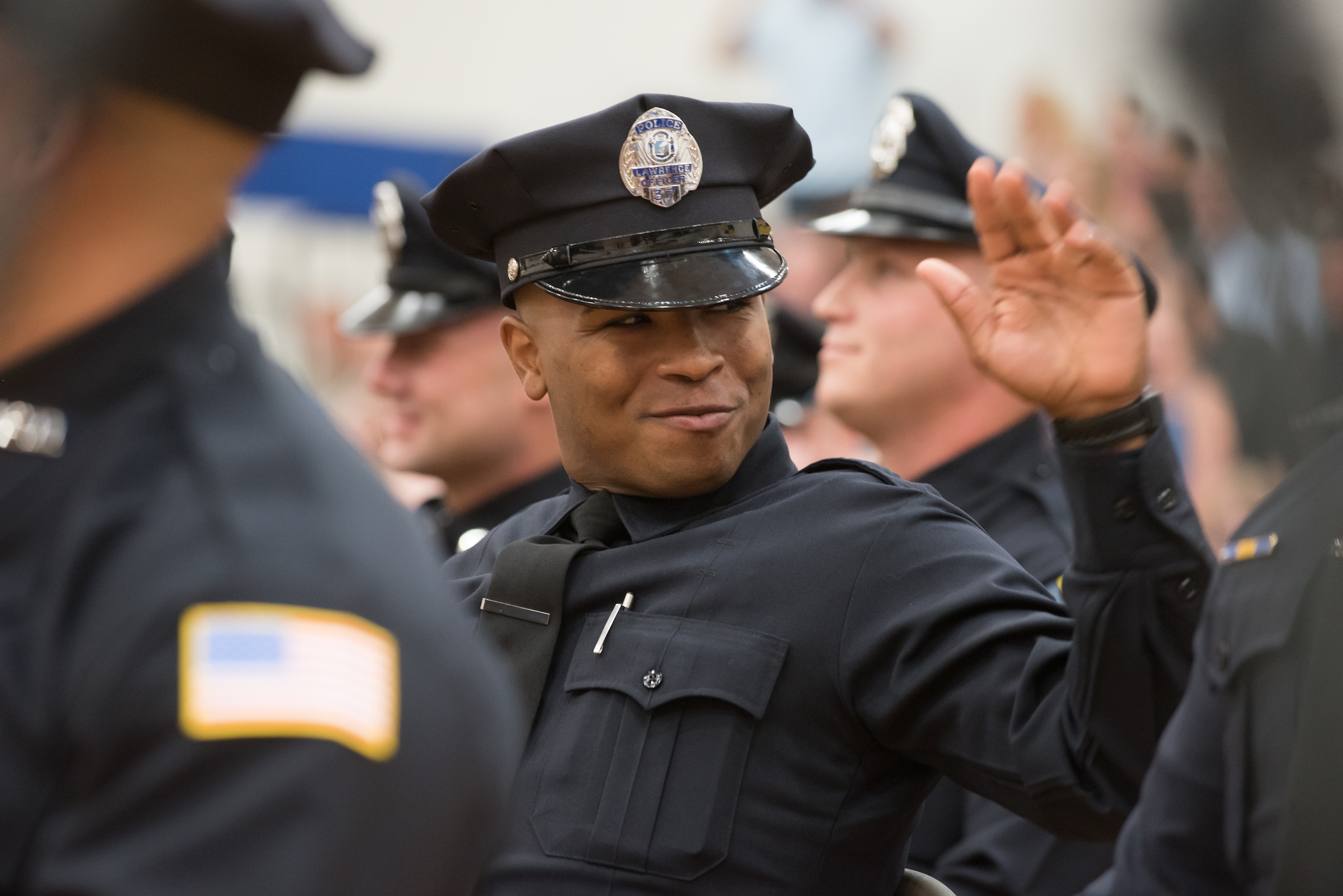 Lawrence Mayor Daniel Rivera said that being a police officer today is not easy. As officers, he told them, they will be dealing with individuals with mental health issues, opioid issues and homelessness. He closed by quoting selected lines from British Nobel laureate Rudyard Kipling’s “If”…”If you can keep your head when all about you are losing theirs and blaming it on you… If you can talk with crowds and keep your virtue, or walk with kings—nor lose the common touch…”.