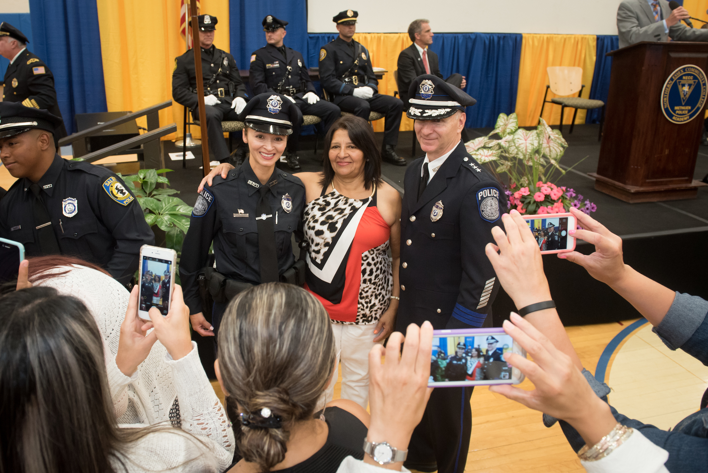The graduation ceremony included remarks by State Senator Kathleen O’Connor Ives; Dan Rivera, Lawrence mayor; Daniel Zivkovich, executive director of the Municipal Police Training Committee; Lane Glenn NECC president. Class President Julianne Murray, who is joining the tufts University Police Department, gave the class address.