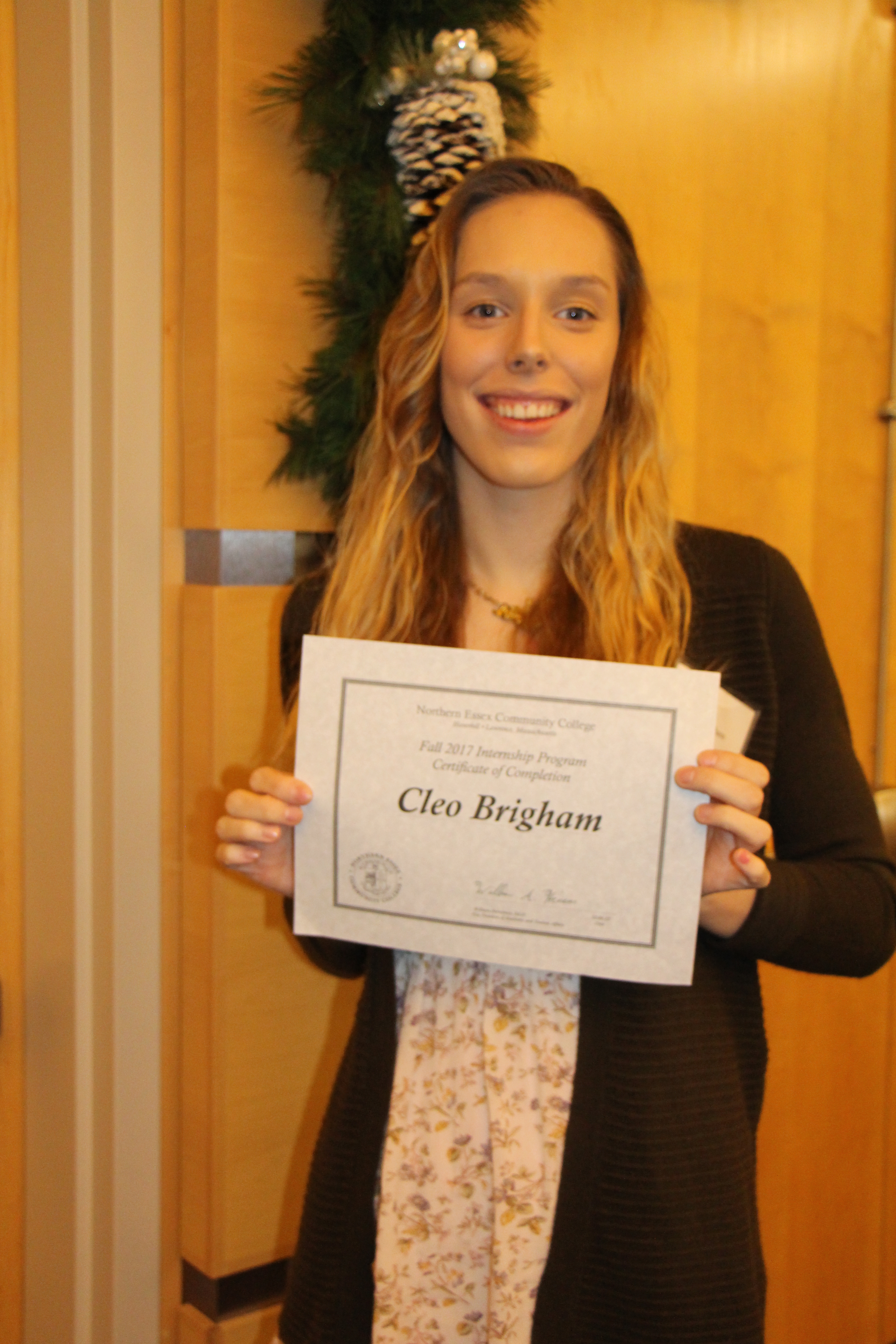 Cleo Brigham, who also presented, interned at NBC Boston. She landed the gig after meeting NBC Boston lead meteorologist Matt Noyes, who was NECC’s guest graduation speaker last May. After two months of persistence she was hired for the Special Projects Unit where she transcribed video footage for reporters and when necessary assisted photographers and researched stories.
