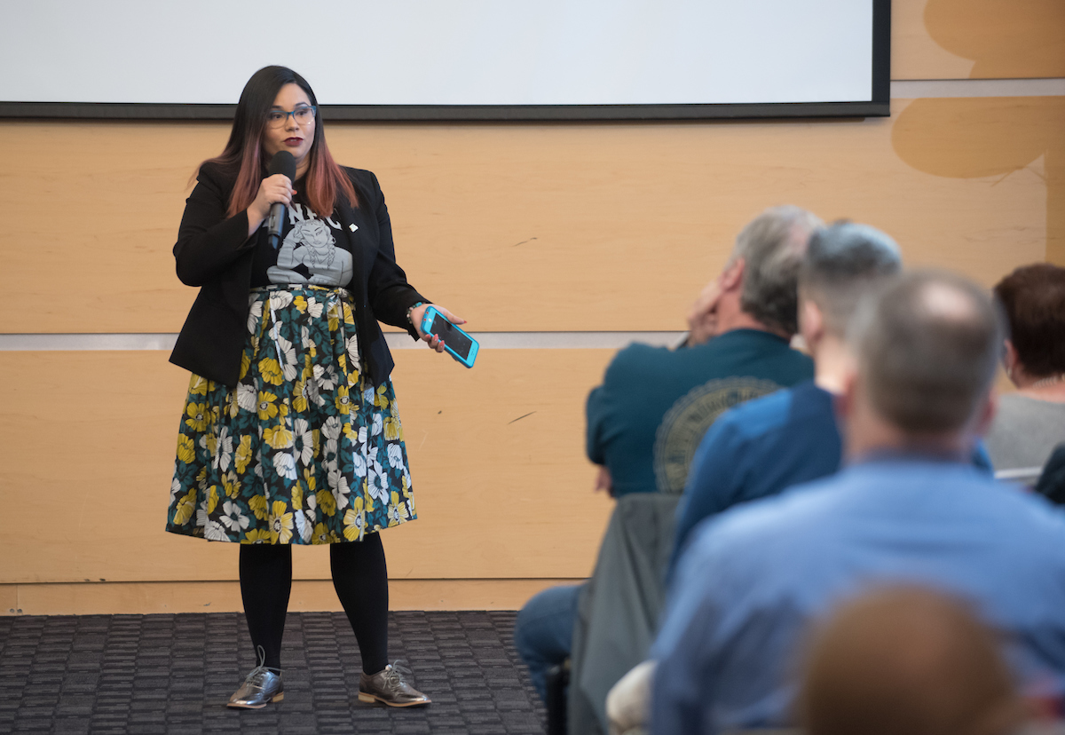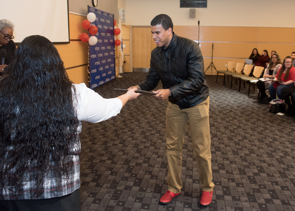 Luz Burgos-Lopez, interim director of the Rainbow Center and assistant dean of students at the University of Connecticut, was the keynote speaker at the National Society of Leadership and Success induction ceremony.