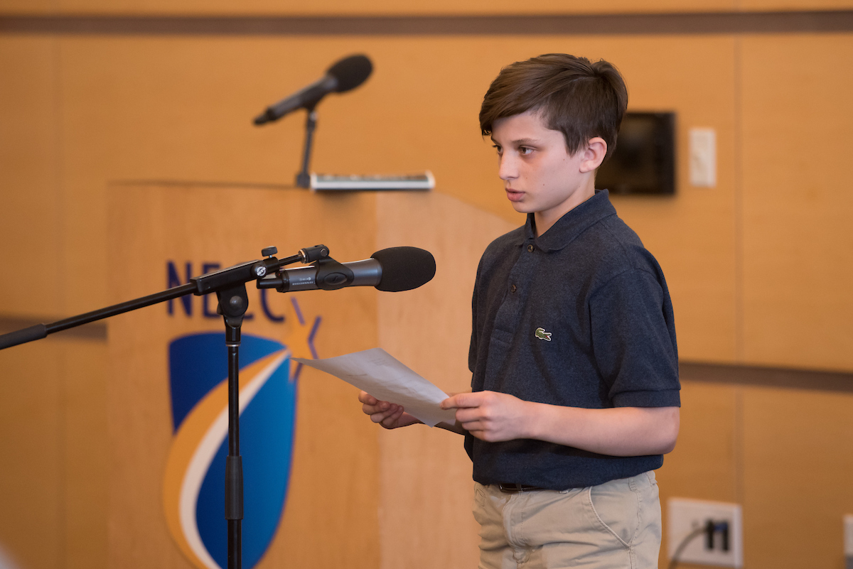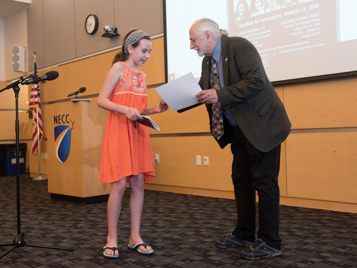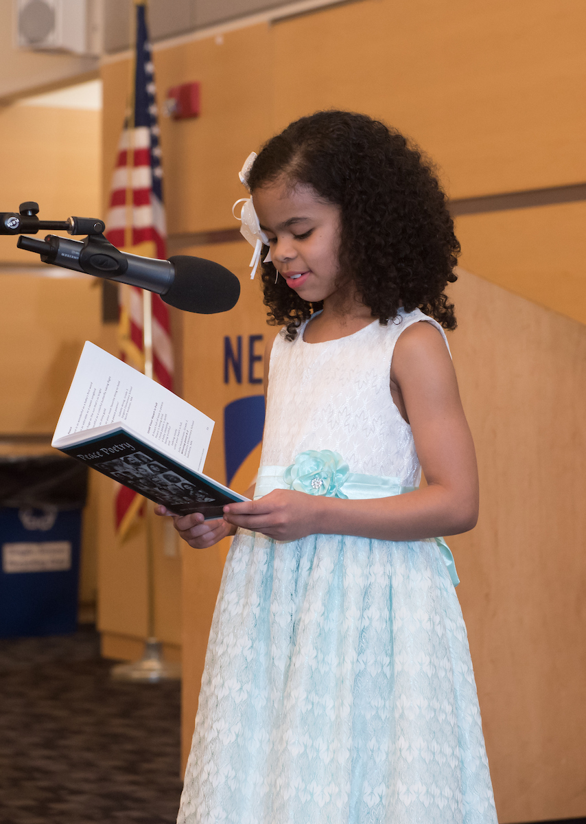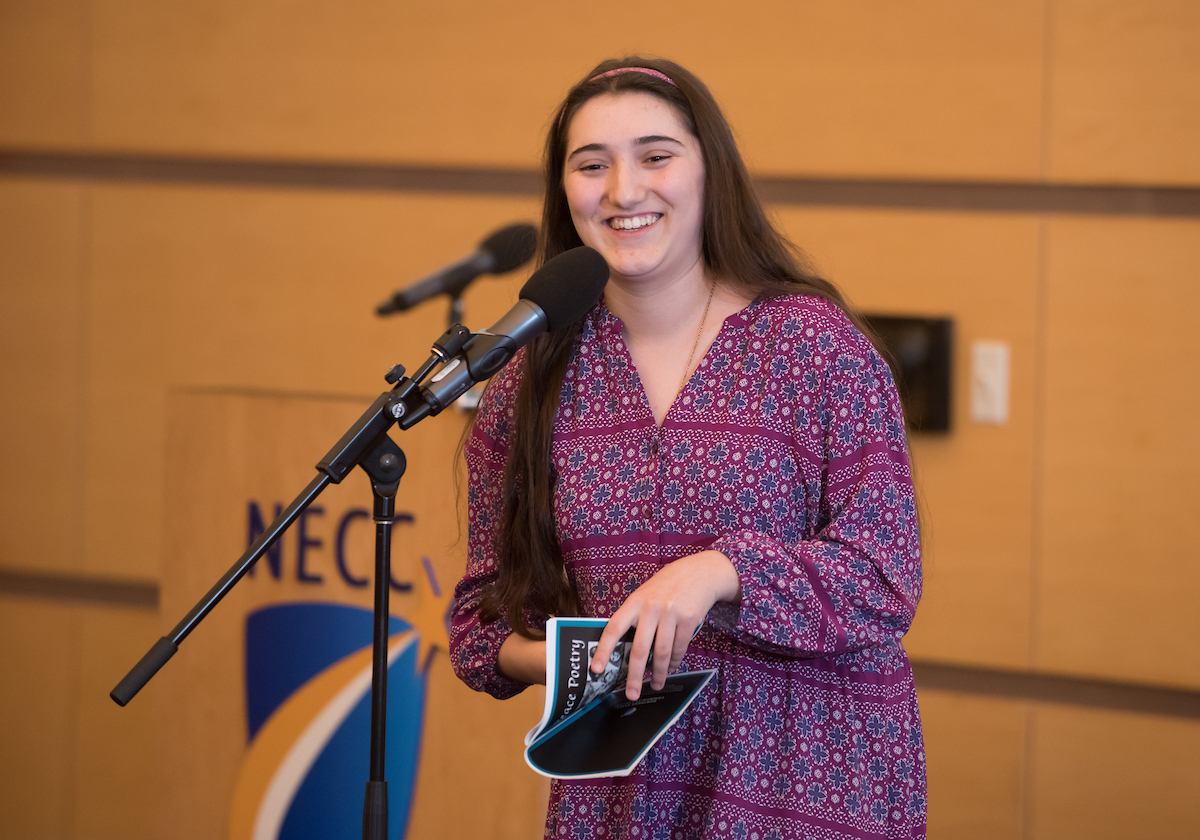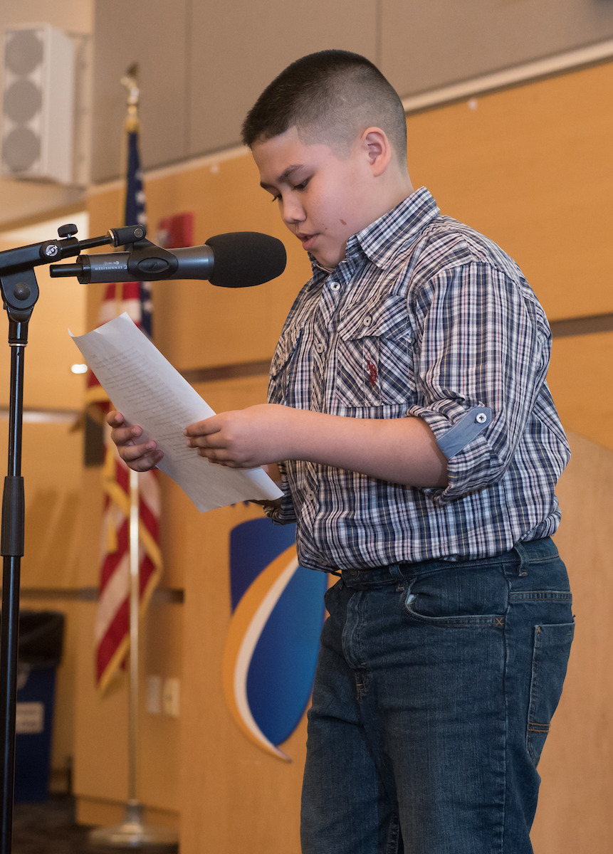 “Circle is the shape of love, and if you split it in thirds, it’s the symbol of peace and, when peace and love come together it becomes indestructible,” read Nathan Lagueux, a third-grader from the River Valley Charter School in Newburyport, during Northern Essex Community College’s 10th Peace Poetry Contest & Reading.