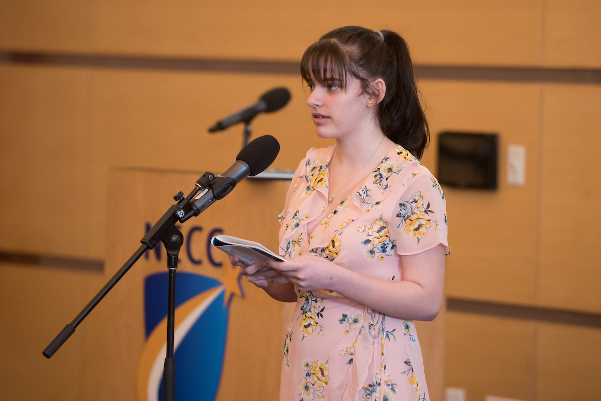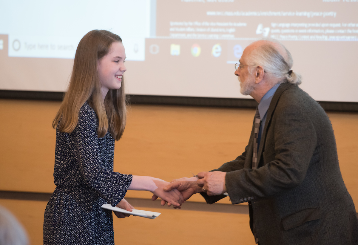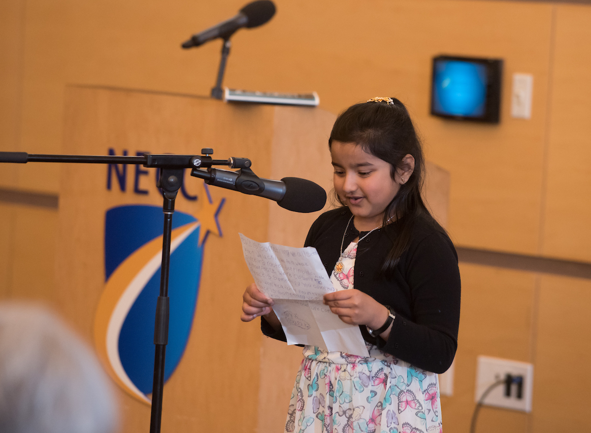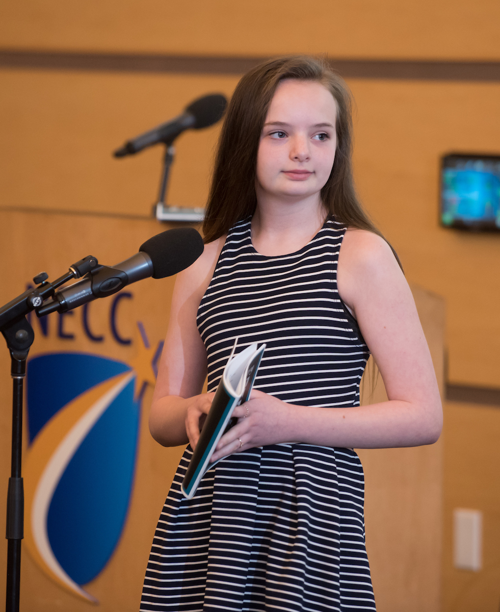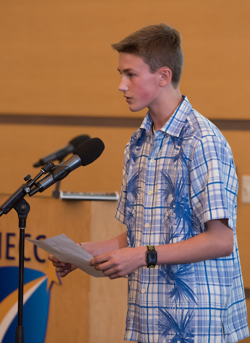 “Circle is the shape of love, and if you split it in thirds, it’s the symbol of peace and, when peace and love come together it becomes indestructible,” read Nathan Lagueux, a third-grader from the River Valley Charter School in Newburyport, during Northern Essex Community College’s 10th Peace Poetry Contest & Reading.