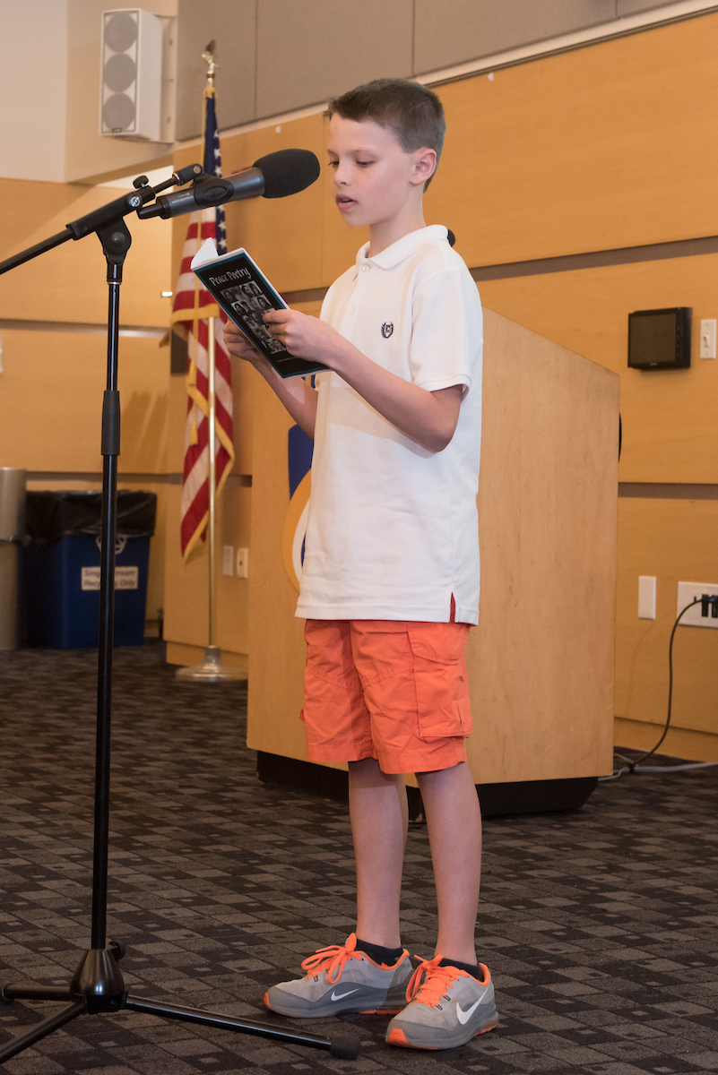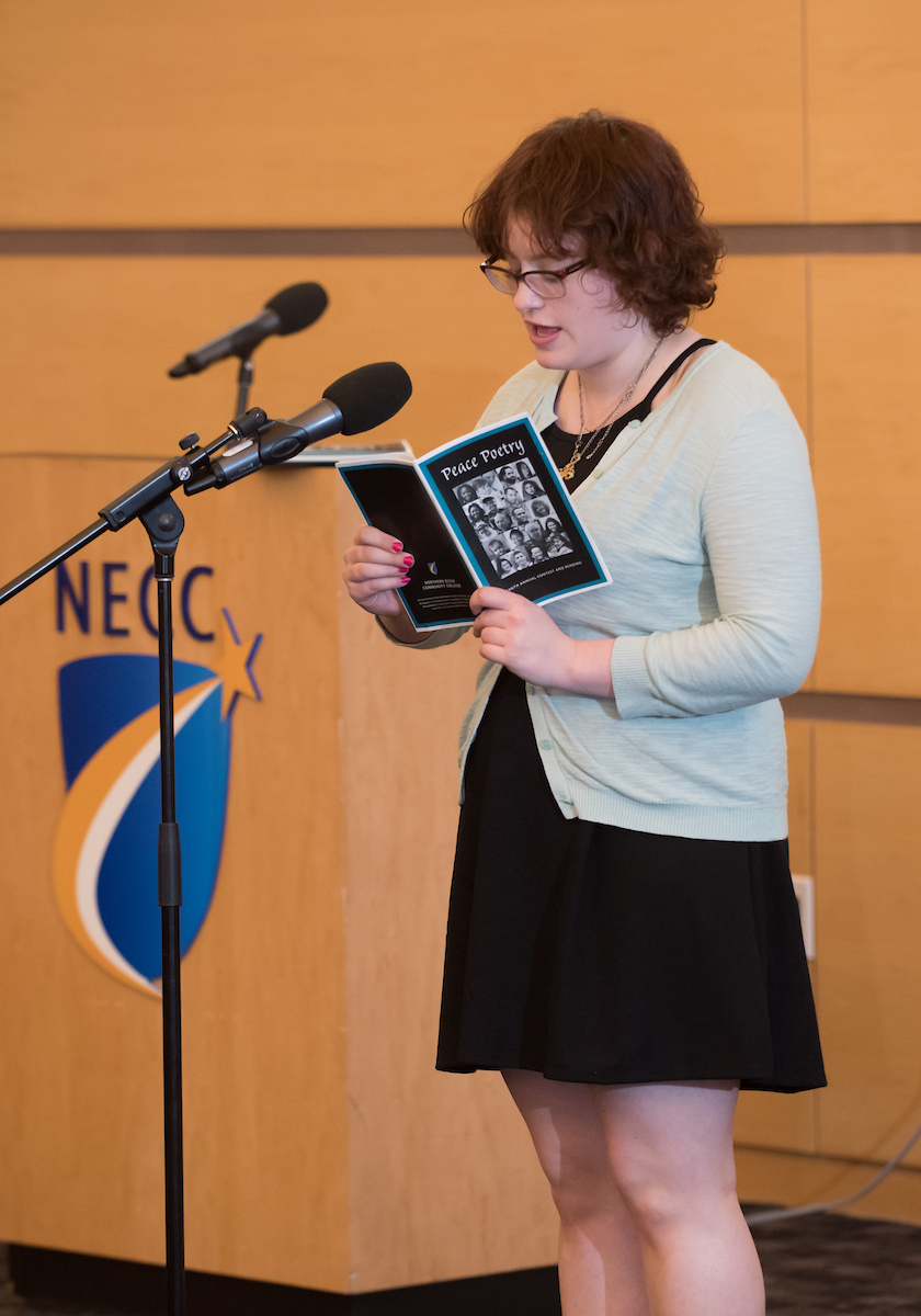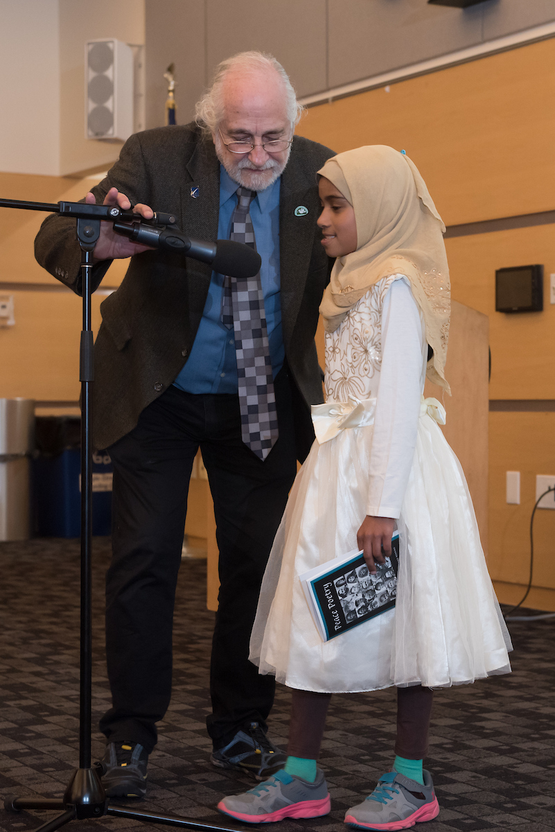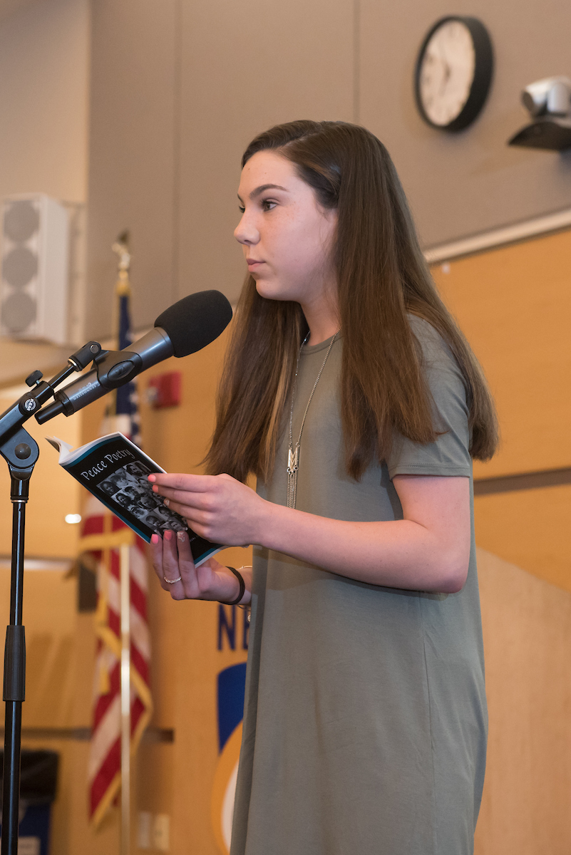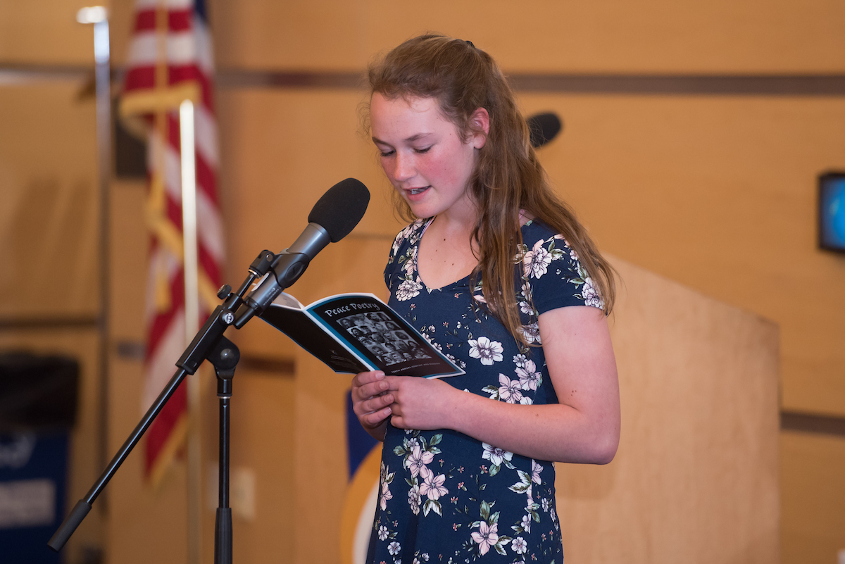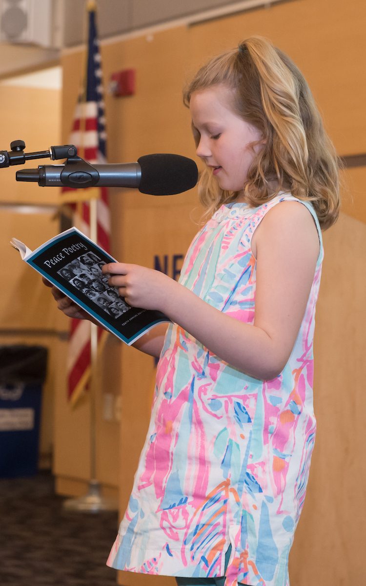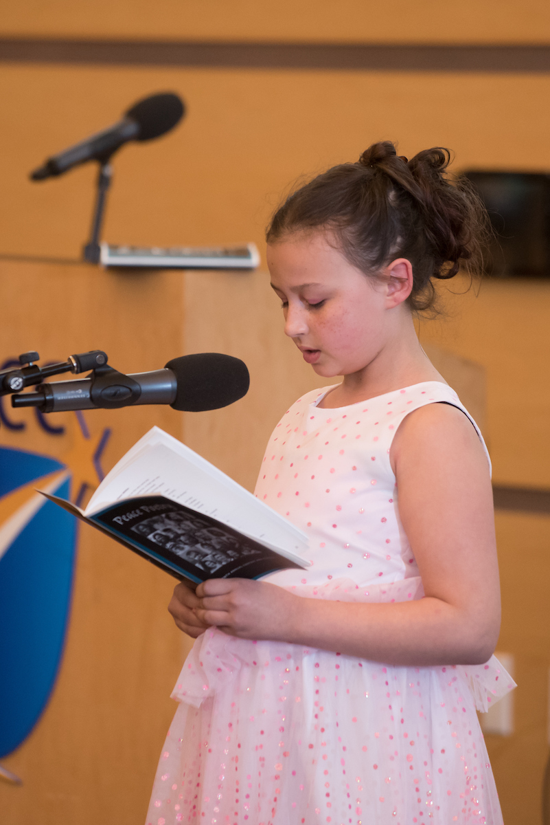 Dozens of students from area public and private schools, kindergarten through high school read their original peace poems in front of hundreds of family members and friends.