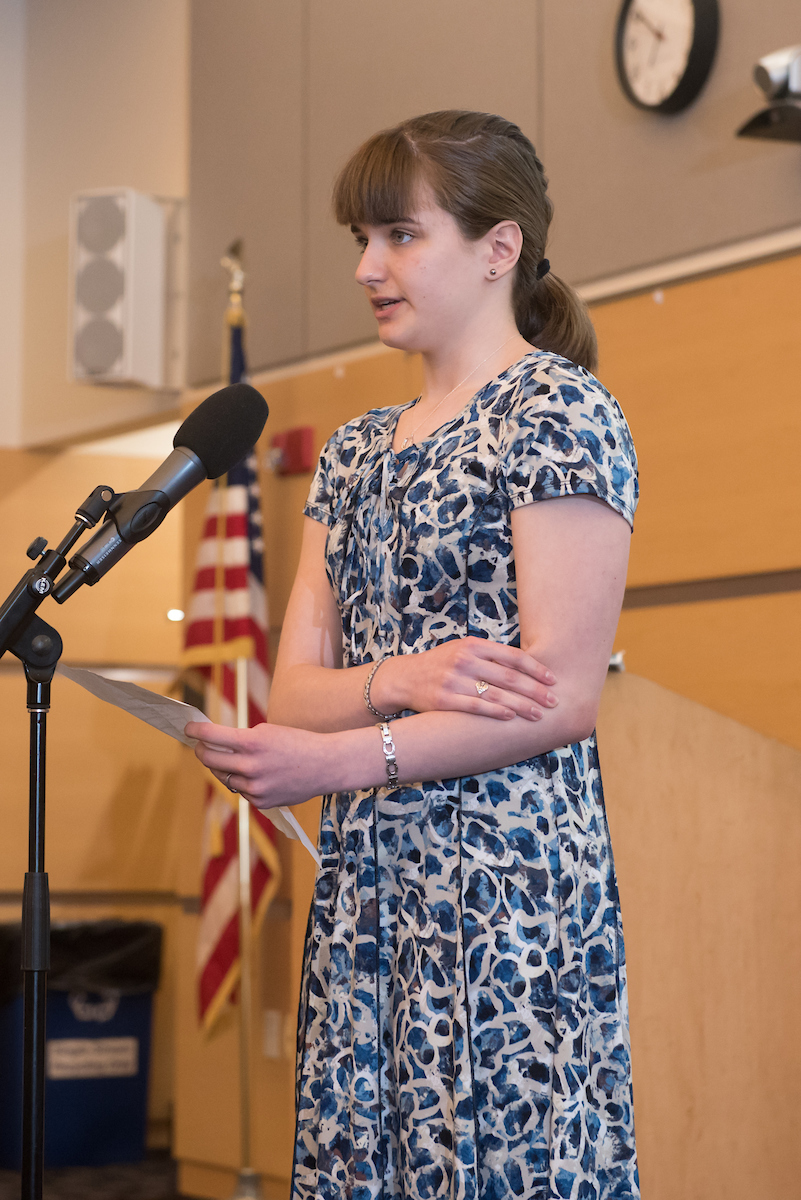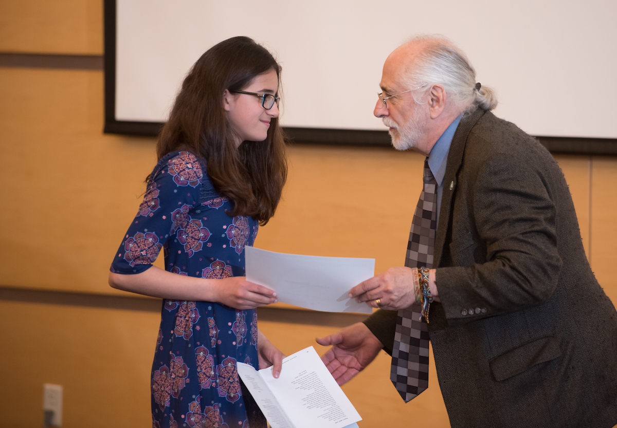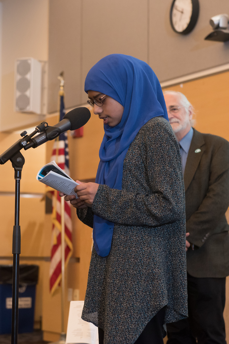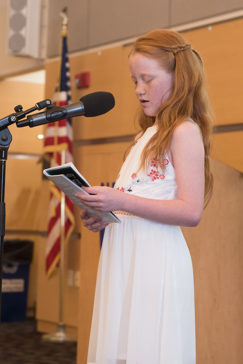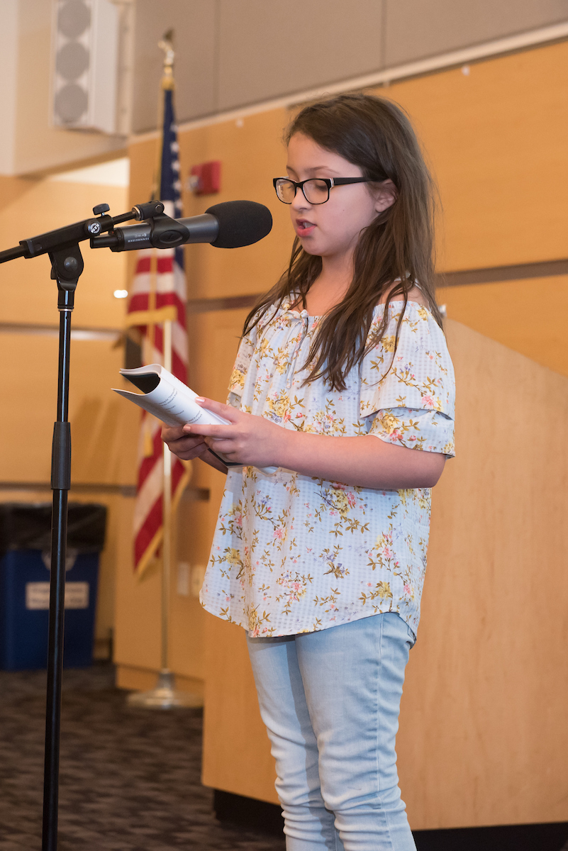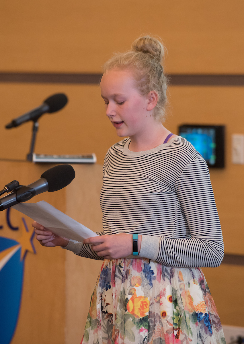 Dozens of students from area public and private schools, kindergarten through high school read their original peace poems in front of hundreds of family members and friends.