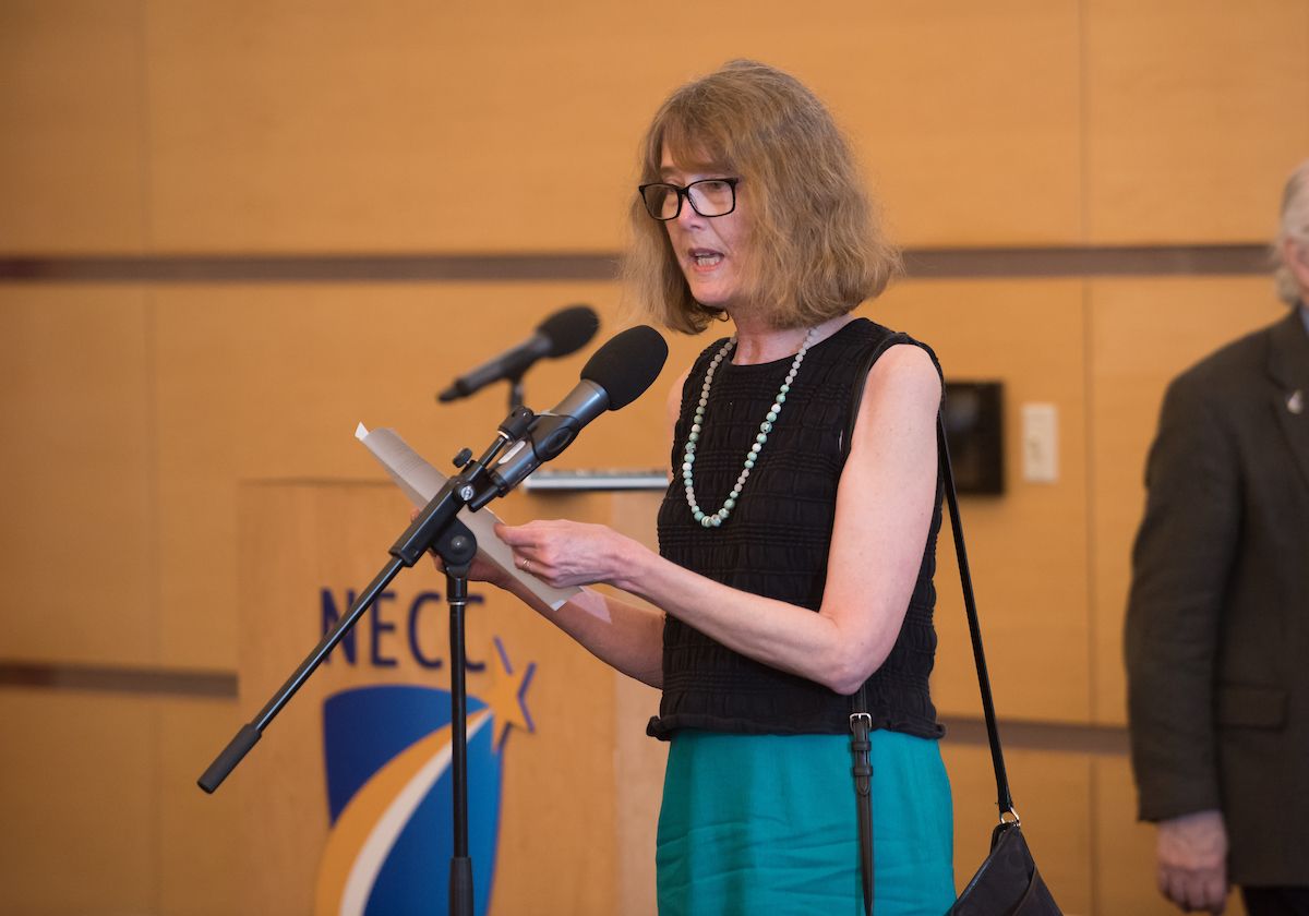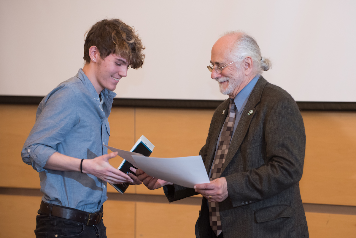 Dr. Paul Saint-Amand, an NECC English professor and founder of the contest gave the keynote before introducing the six finalists.