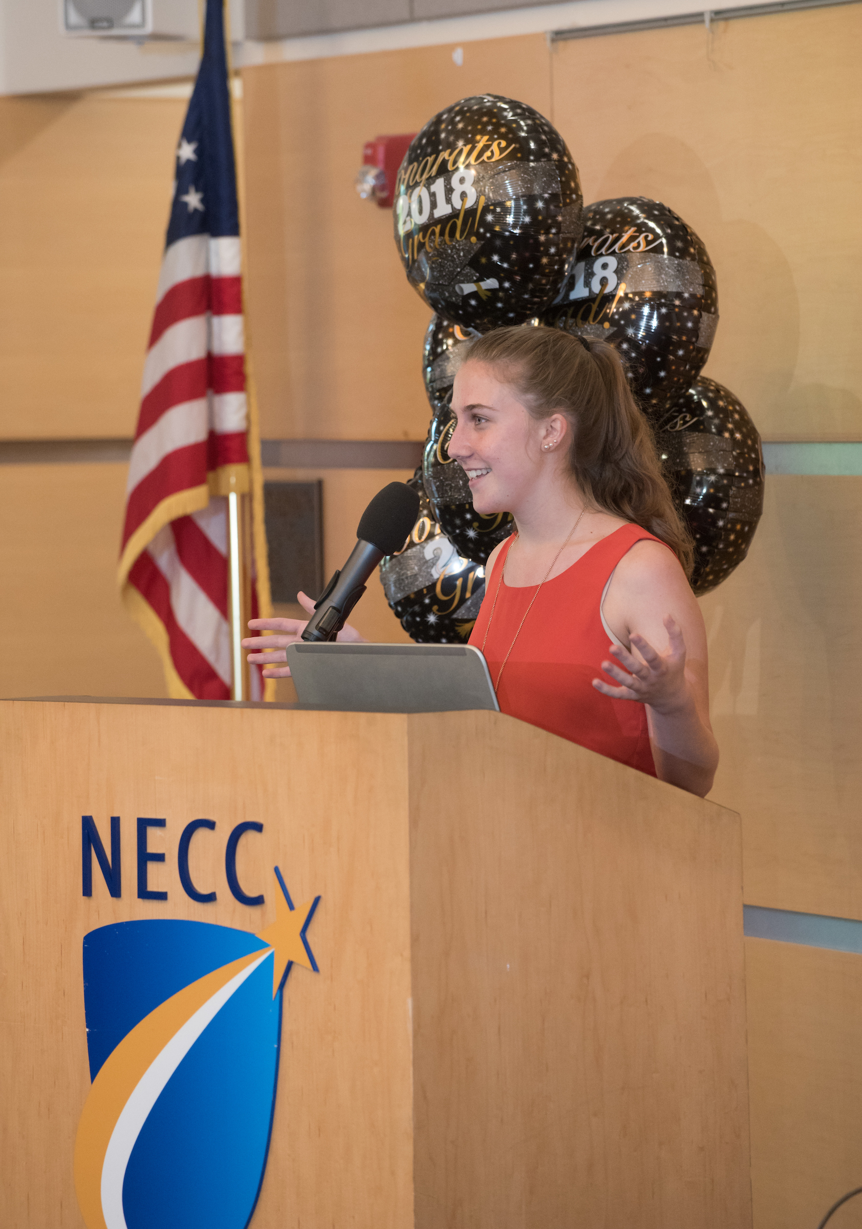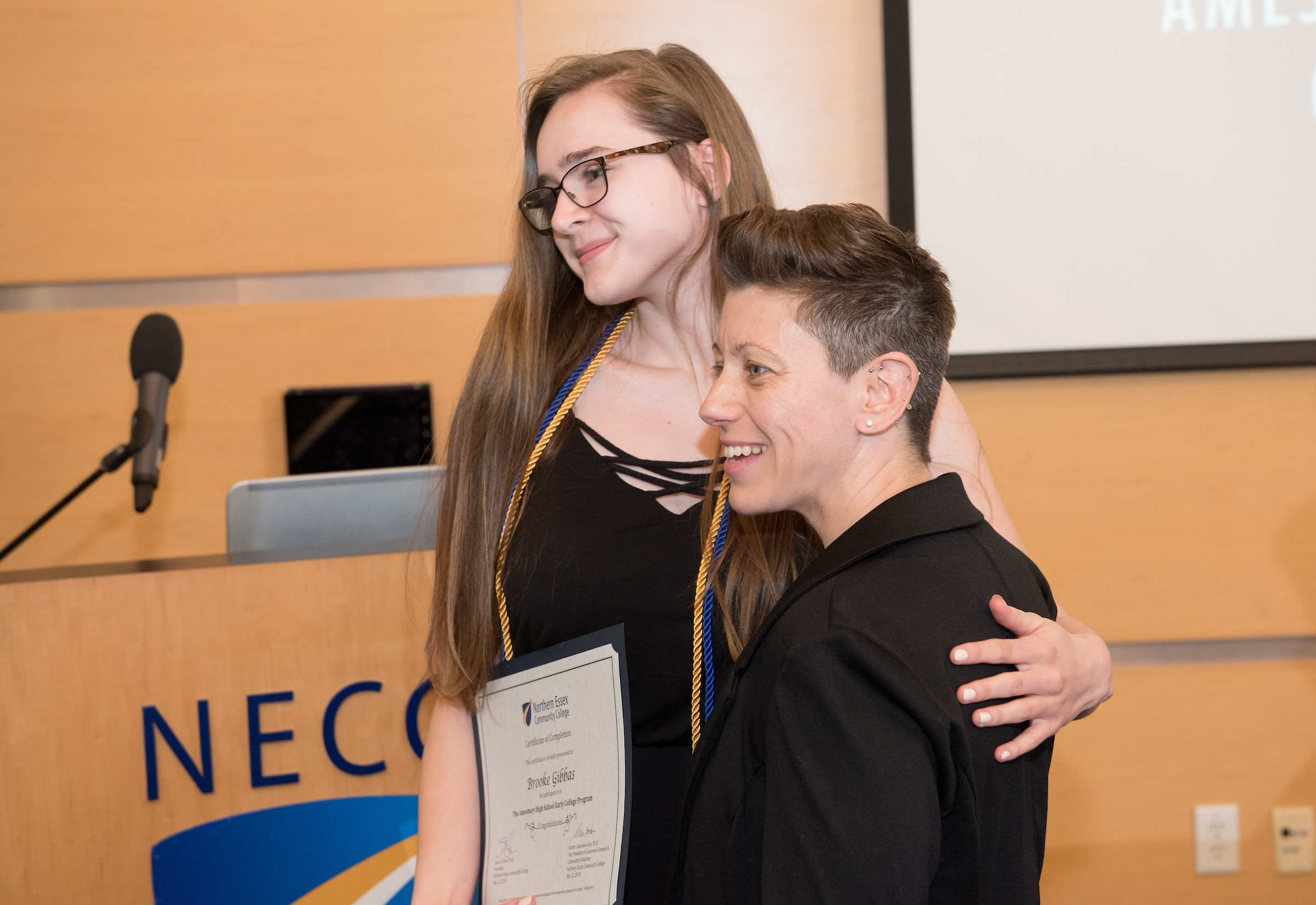 Also speaking at the ceremony were Lane Glenn, president of Northern Essex, and the proud father of Thomasina, and Noemi Custodia-Lora, the NECC vice president who oversees Early College Programs.