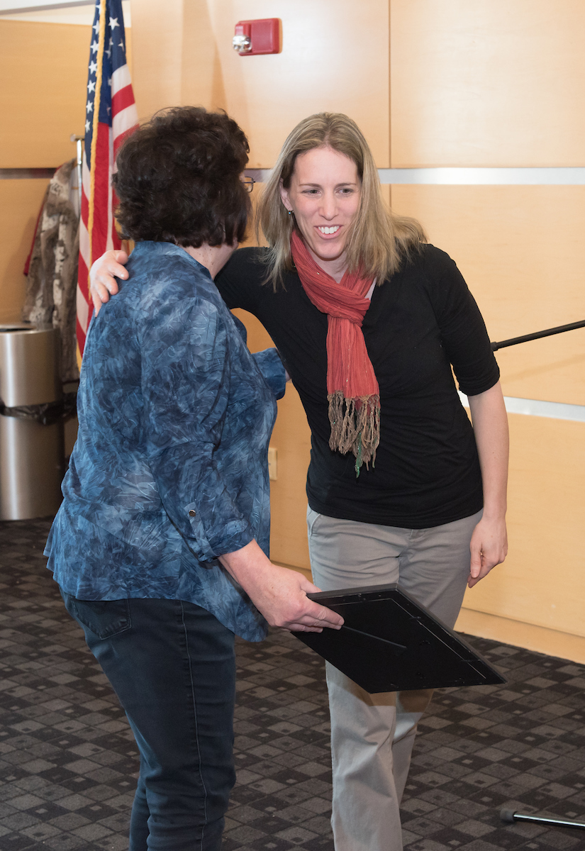 - Alicia Iolas accepts NISOD Award from Carolyn Knoepfler.