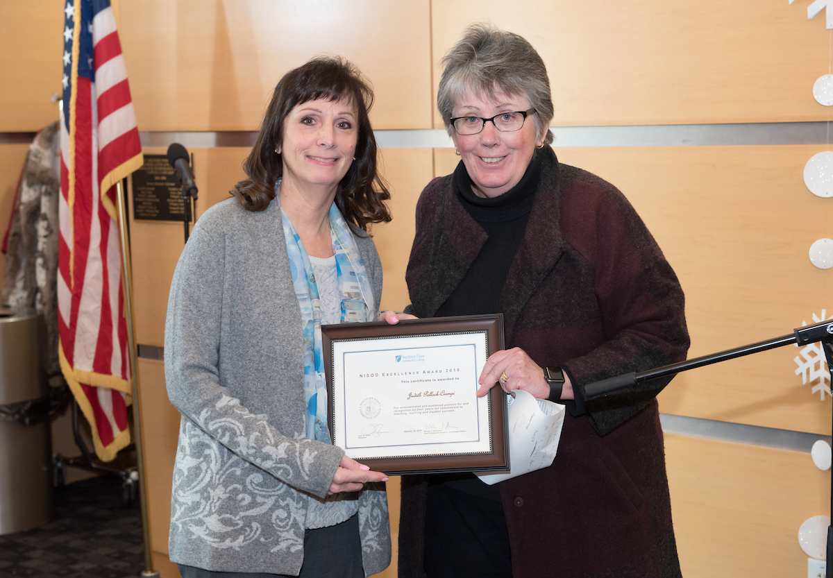 - Trish Machado accepts NISOD honor from Judith Zubrow.