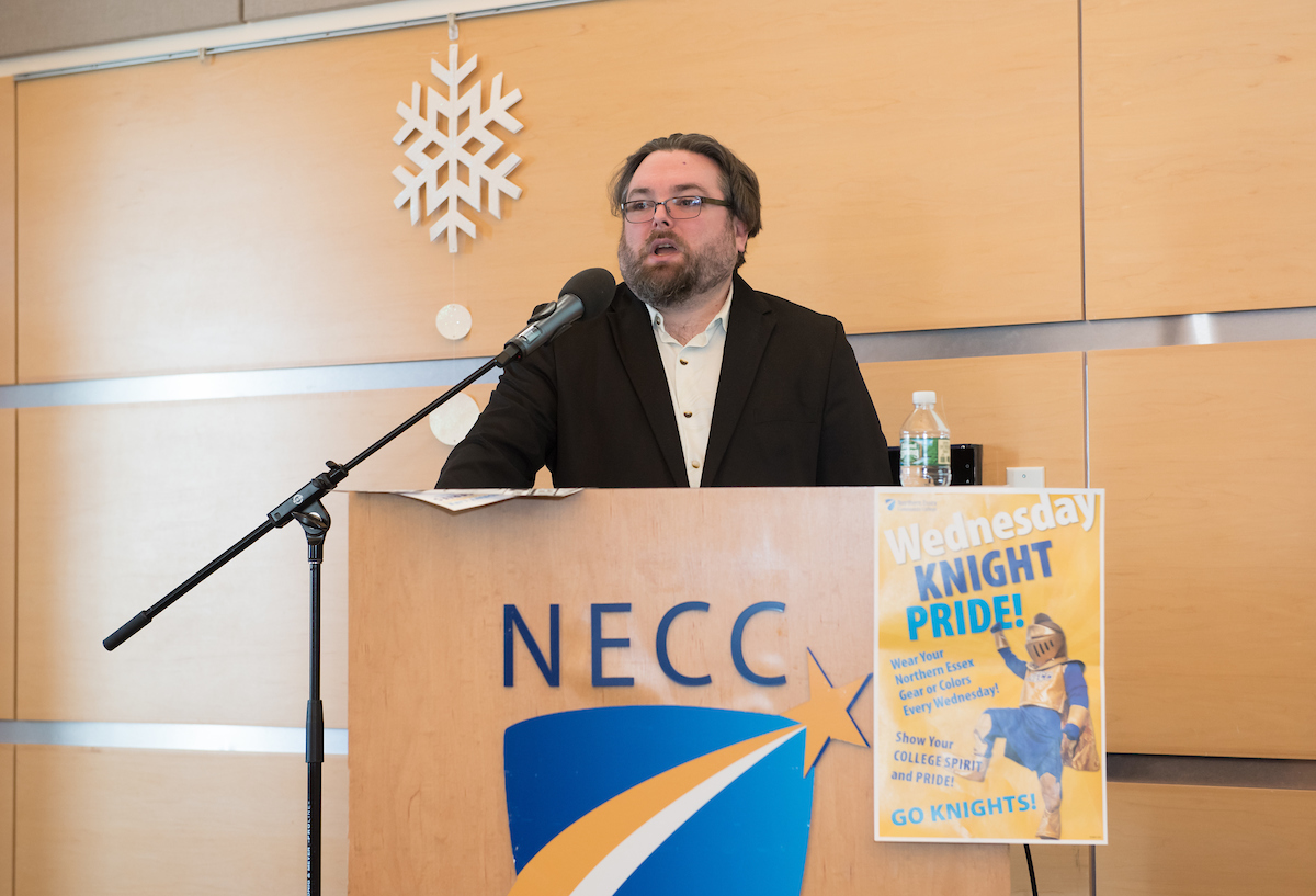 Karen Hruska, NECC’s director of counseling, and Janet D’Agata-Lynch, coordinator of community resources, reminded everyone of Northern Essex’s free food resources including the monthly farmer’s market and peanut butter, non-nut butter, and jelly sandwich stations set up around campus. The stations are possible thanks to bread donations by Fantini’s Bakery and jellies from R. E. Kimball & Co in Amesbury. To date more than 26,000 lbs of produce were delivered this fall, with each shopper receiving 20 to 25 lbs. The next markets will be January 29, February 26, March 26, and April 23. In addition, more than 200 frozen smart meals have been served. Smart meals are created from prepared foods donated by institutions. The meals are packaged to individual portions and frozen.